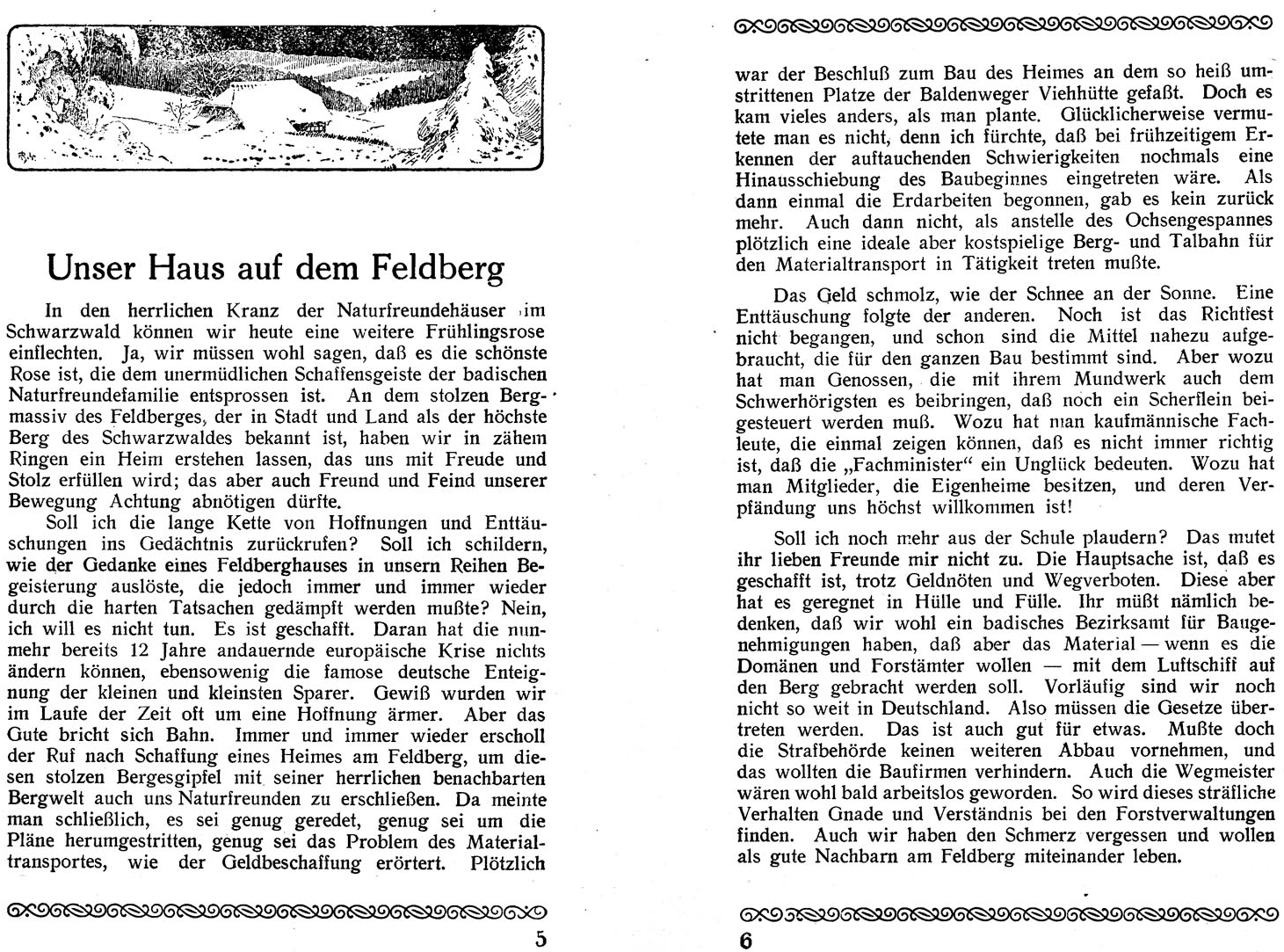 Ungekannte Hindernisse und Schwierigkeiten stellten sich bis zum letzten Hammerschlag in den Weg.“ Wenn es uns trotzdem gelungen ist, das gesteckte Ziel zu erreichen, so danken wir dies nicht nur der Opferbereitschaft unserer Mitglieder, sondern auch dem guten Rufe, den die Naturfreundebewequng in Baden im mühevollen Ringen sich erkämpft hatte“, so schrieb der damalige Gauleiter der badischen Naturfreunde in der Einladung.